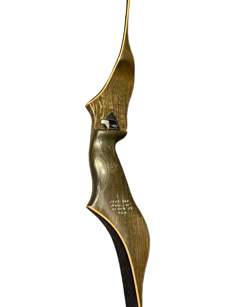 Ben Pearson Renegade recurve, model 7260. AMO 60” and marked 50# @ 28”. Bow is straight, tips are solid, and the riser has great grain and color. Minimal cosmetic wear but no structural issues. Smooth draw, classic Pearson performance, and USA-made quality.