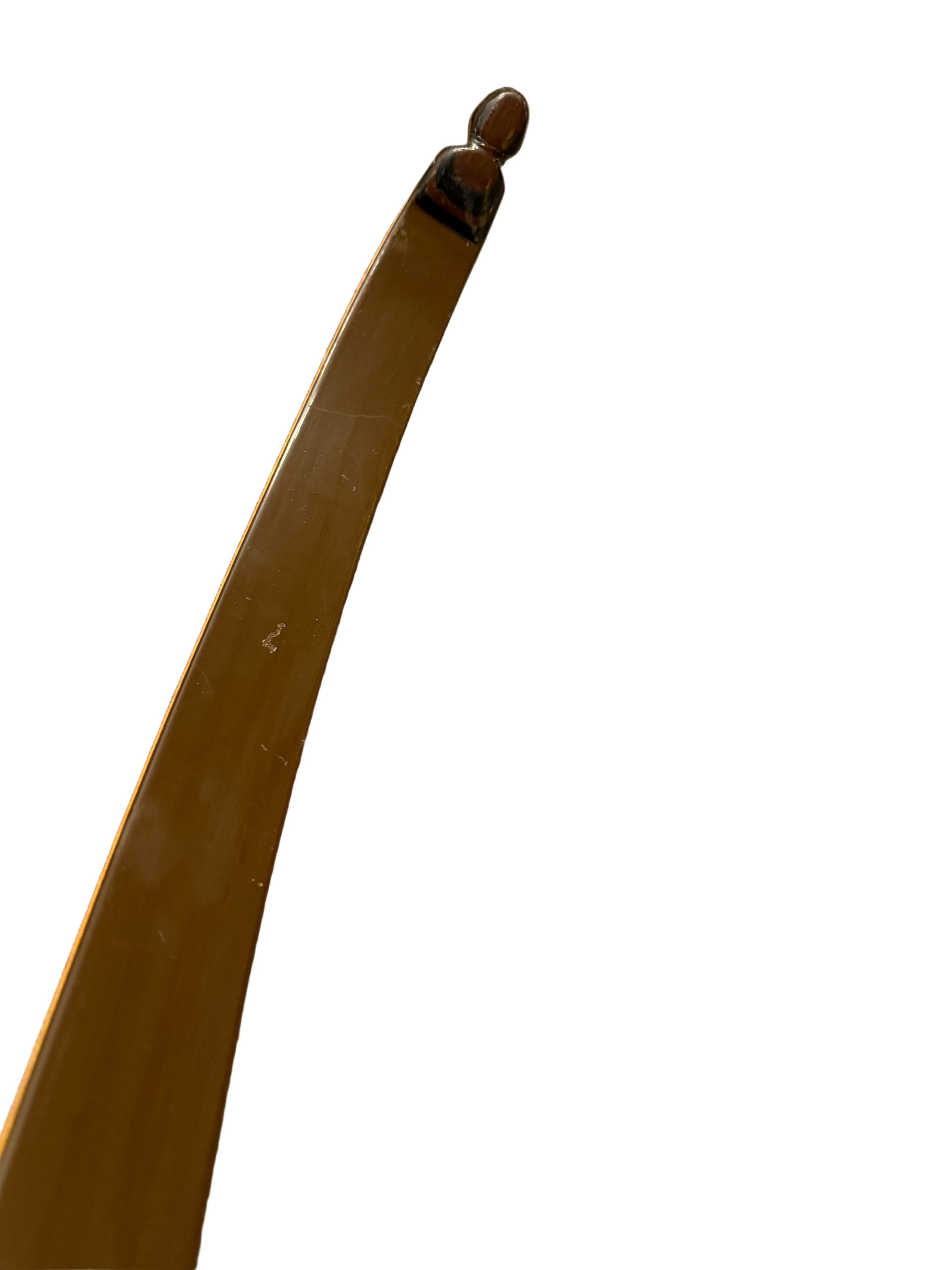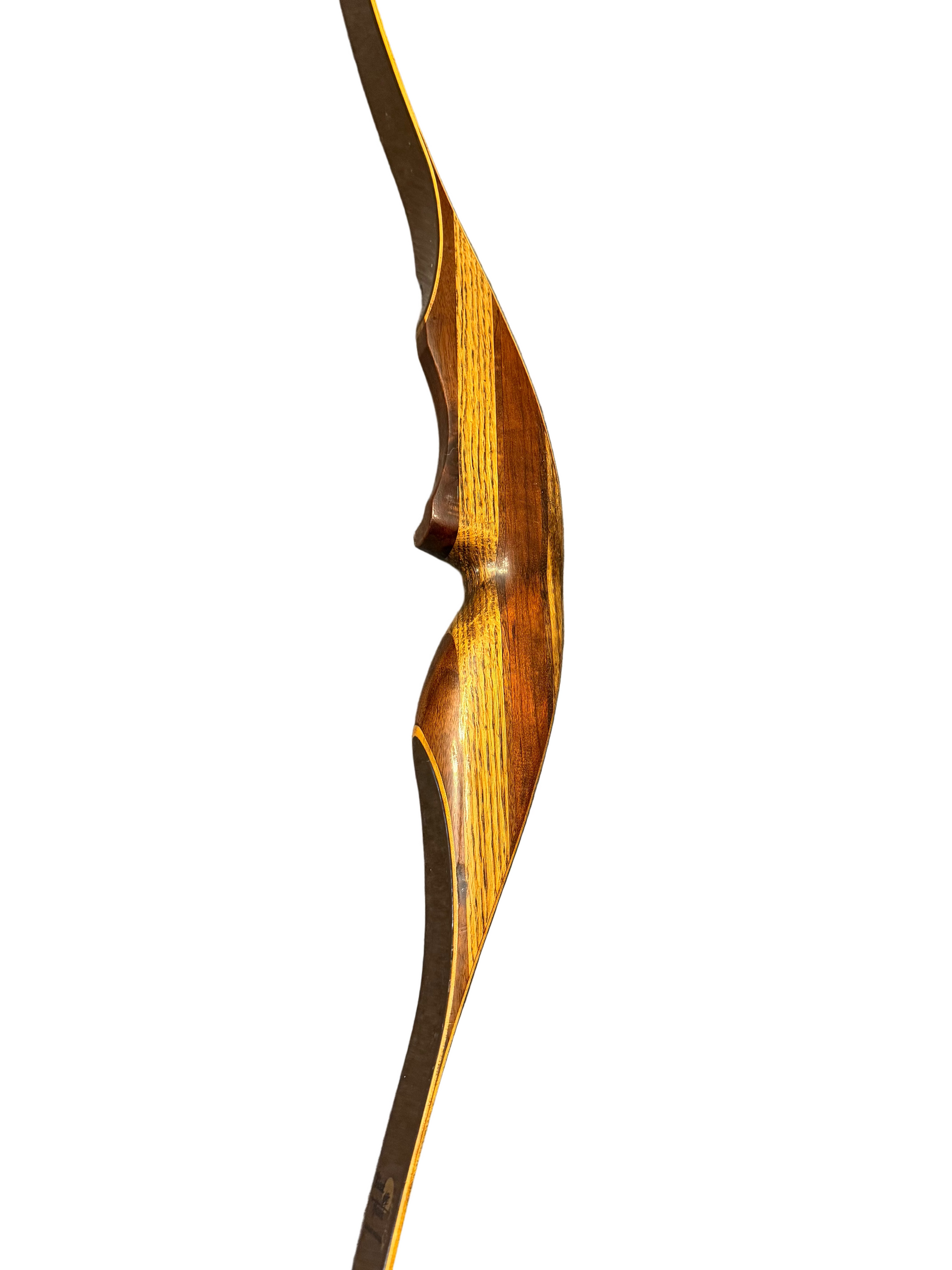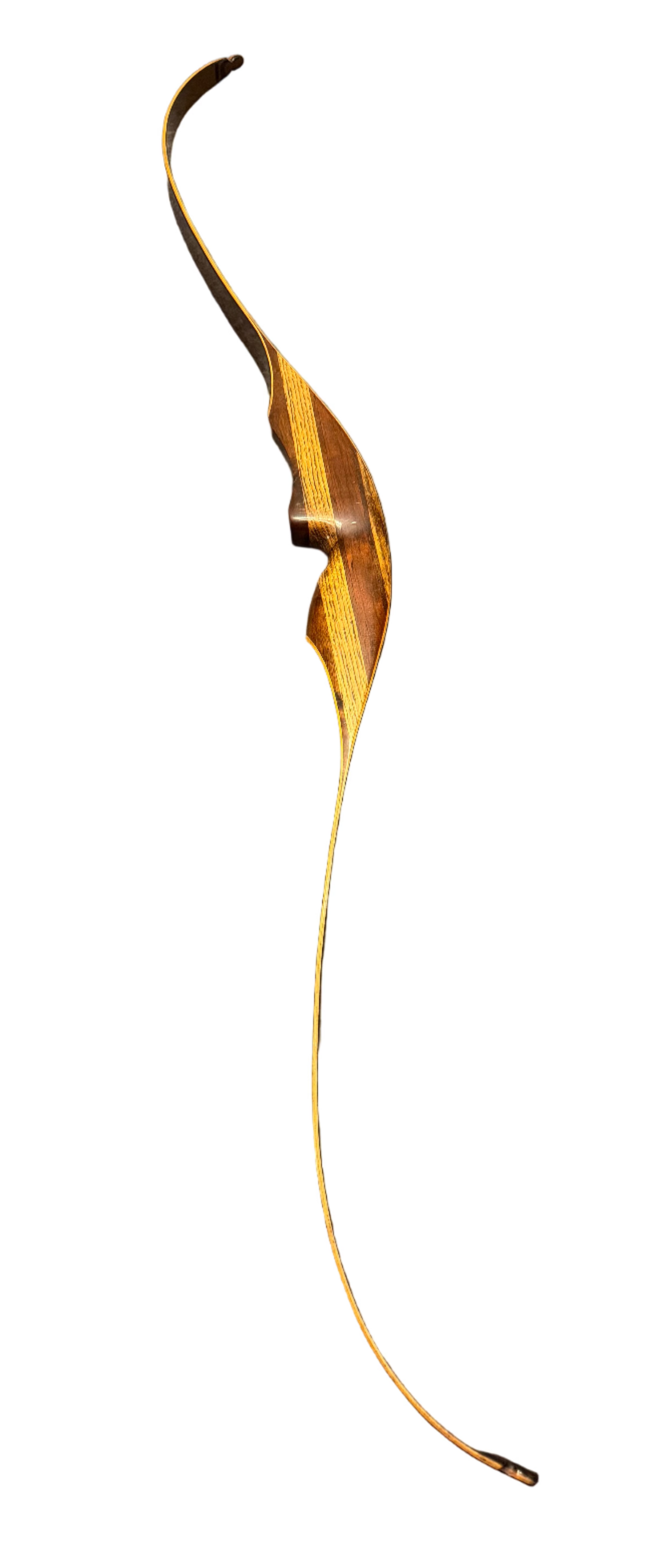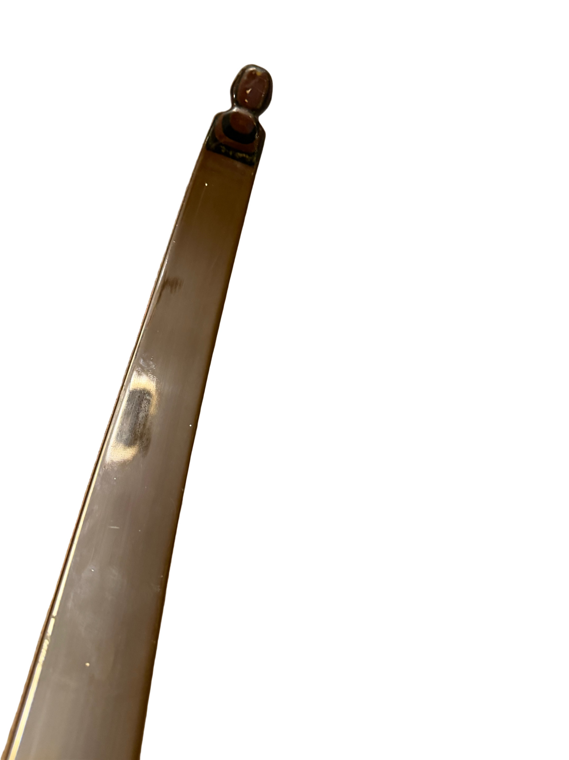 Vintage Black Hawk Short Hornet, 58” and marked 40# @ 28”. The riser is in great shape with gorgeous multi-tone wood and clean lines. Limbs are straight with no twist.