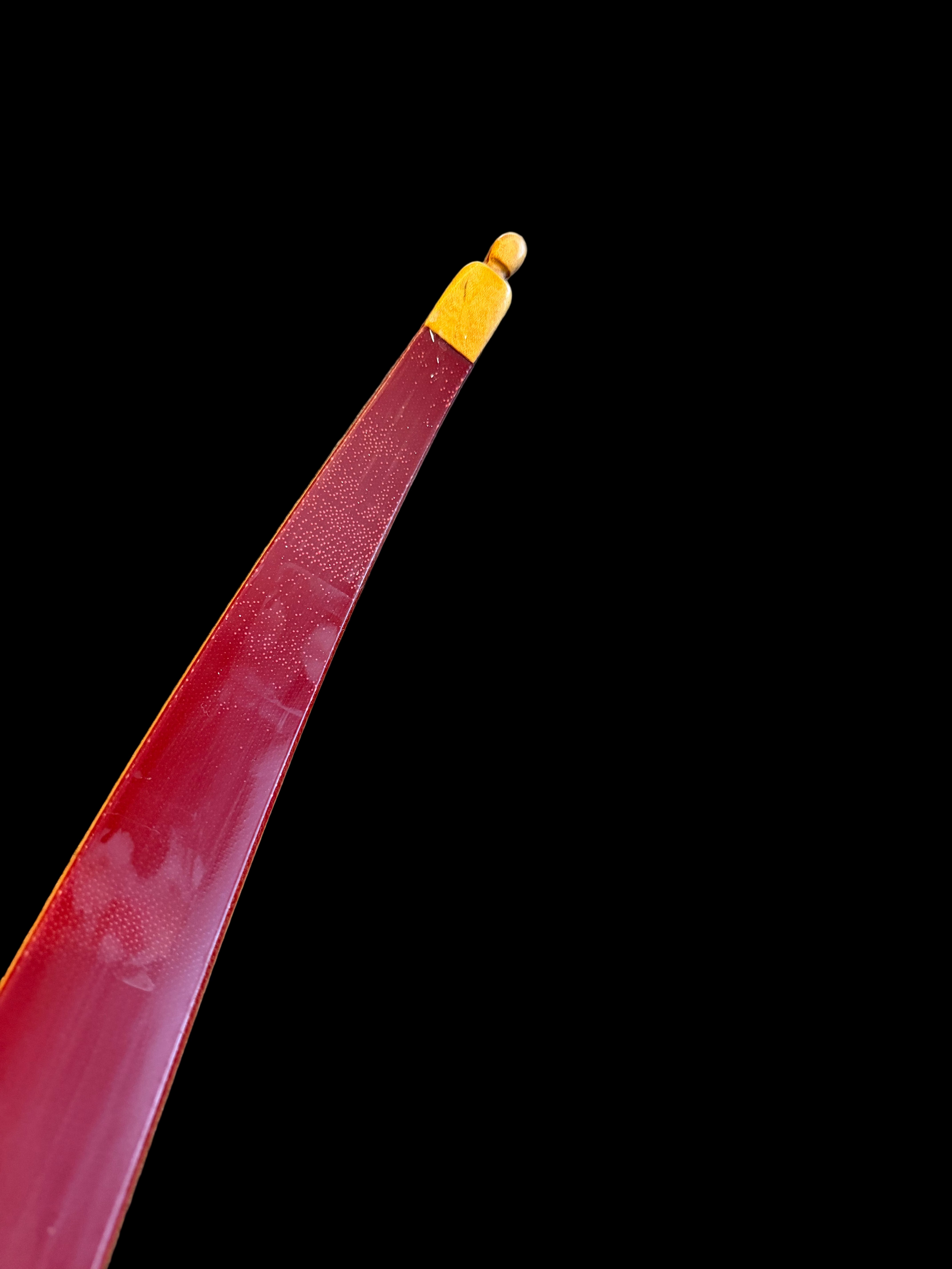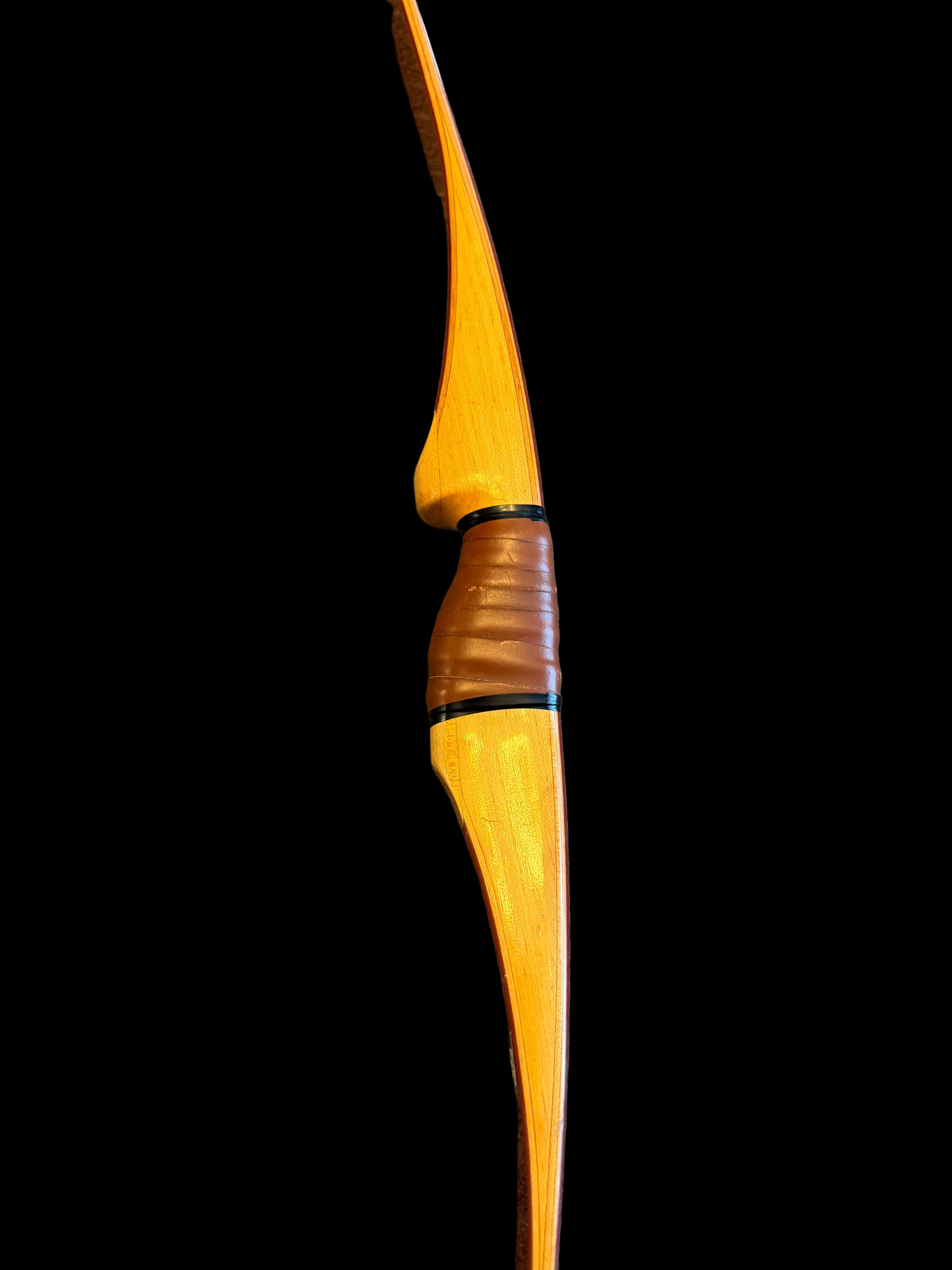 Beautiful 58” Cravotta Bros. Wasp in excellent shooting condition. Limbs are straight with no stress cracks, tips are solid, riser is clean, and the original decal is intact. Classic brick red glass with maple riser and leather wrap. A fast, smooth, lightweight hunter or collector piece. Hard to find them this clean.